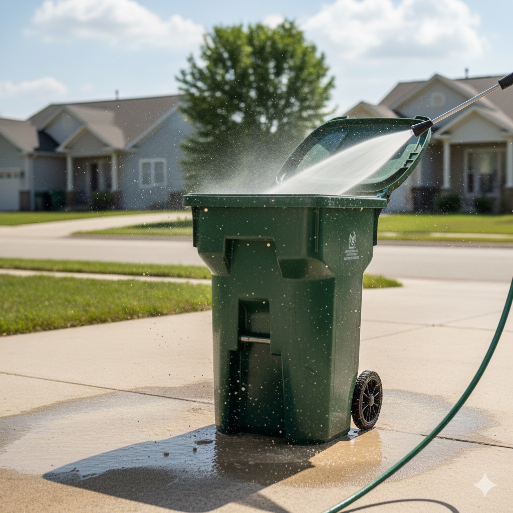 Eliminate foul odors, sticky build-up, and germs with our trash bin cleaning service.